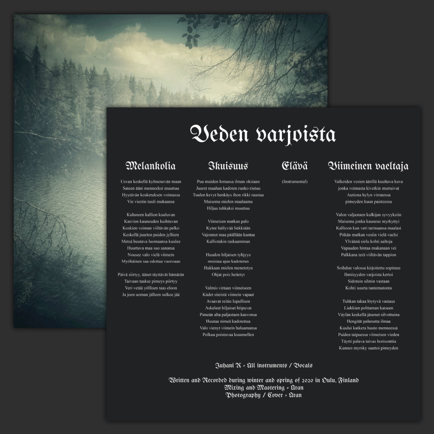 Aran's first full length album "Veden Varjoista" (Meaning: "From The Shadows of The Water") got its inspiration from nature surrounding the band's home town Oulu. Especially the sea was big influence since the town is situated by the Gulf of Bothnia.